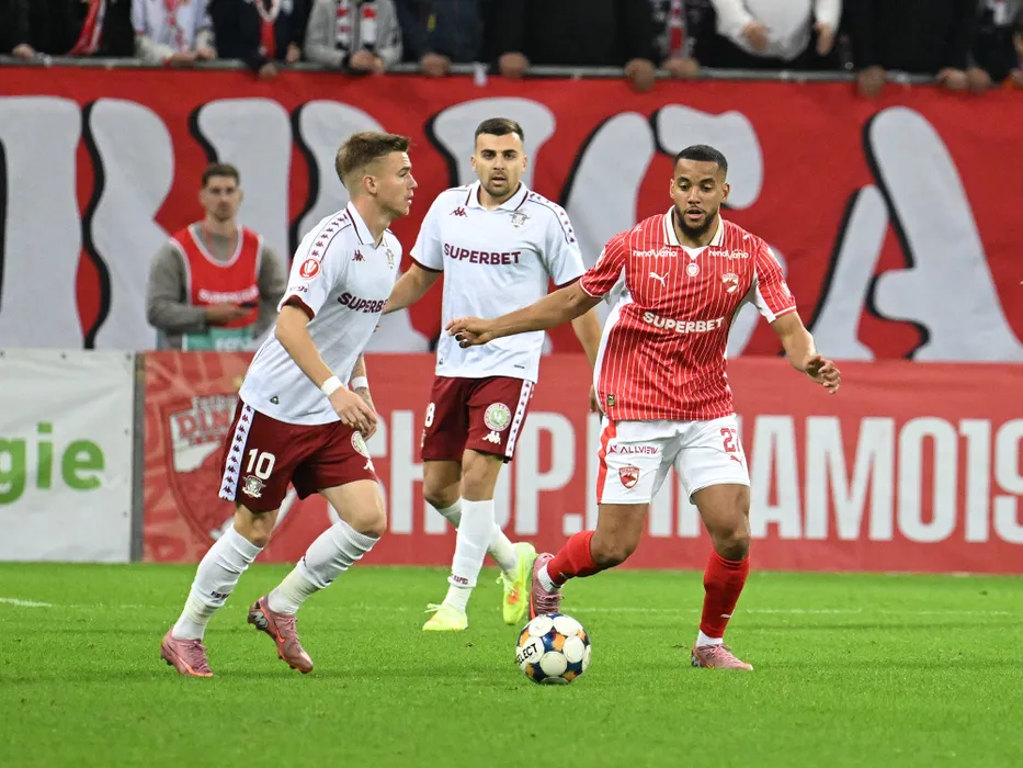 Claudiu Adrian Mihai Petrila, Luka Gojkovic si Maxime James Sivis in meciul de fotbal dintre Dinamo Bucuresti si Rapid Bucuresti, din cadrul Superligii Superbet, desfasurat pe Arena Nationala din Bucuresti, duminica 19 octombrie 2025. © FOTO:Razvan Pasarica/SPORT PICTURES