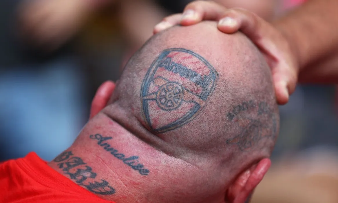 LONDON, ENGLAND - MAY 27: A Arsenal fans tattoo is seen prior to The Emirates FA Cup Final between Arsenal and Chelsea at Wembley Stadium on May 27, 2017 in London, England. (Photo by Ian Walton/Getty Images)