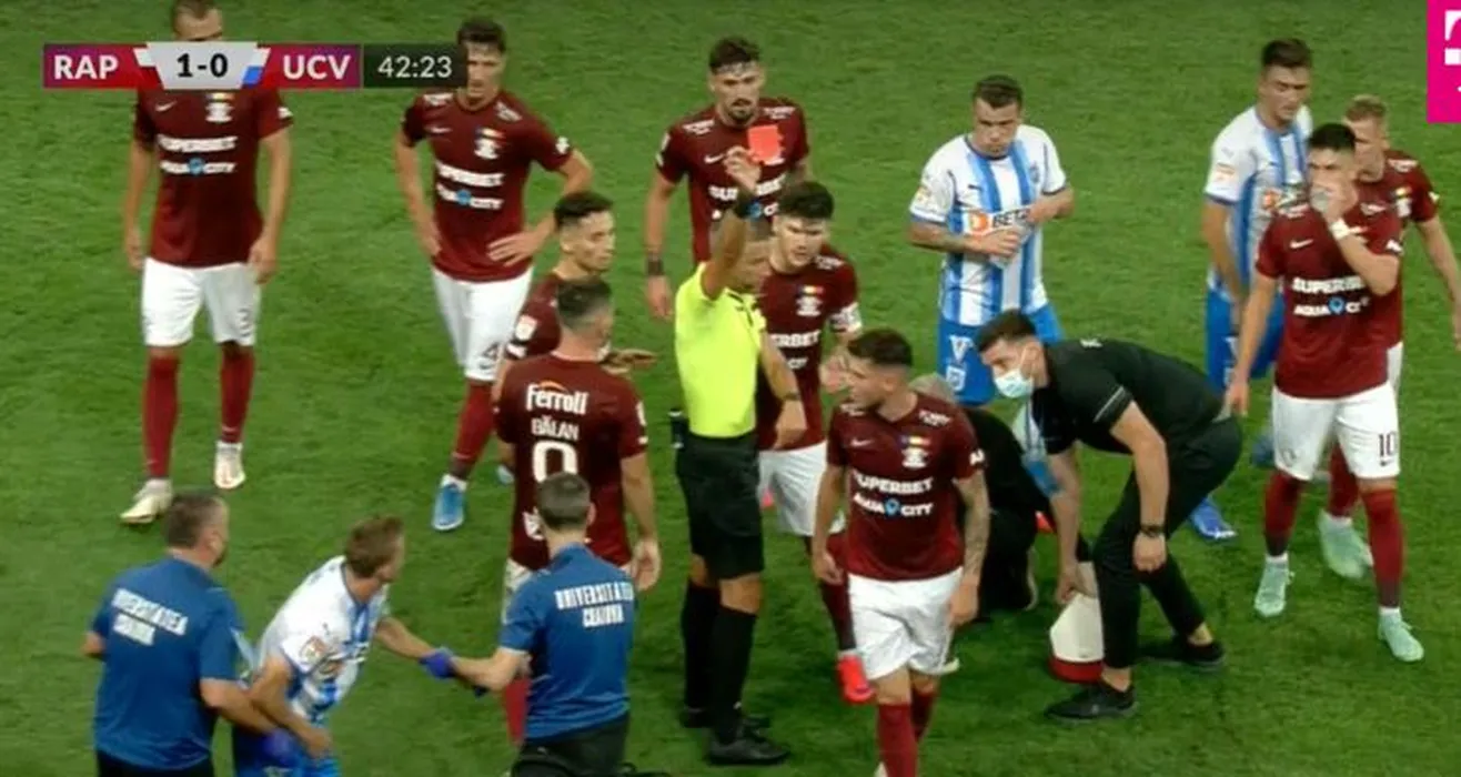 Claudiu Belu-Iordache, intrare șocantă la Nicușor Bancu! Cum a primit cartonașul roșu la Rapid – Universitatea Craiova. Ce decizie a luat Mihai Iosif după eliminare