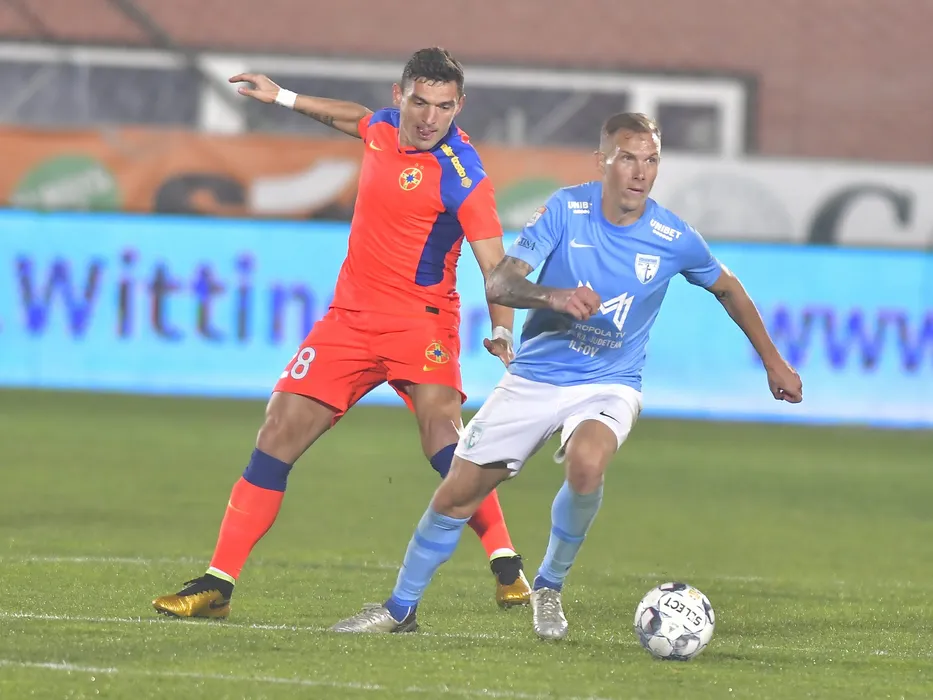 Claudiu Andrei Keseru si Lukas Droppa in meciul de fotbal dintre FC Voluntari si FCSB, contand pentru Liga 1 Casa Pariurilor, desfasurat pe Stadionul Anghel Iordanescu din Voluntari, duminica 7 noiembrie 2021. © FOTO:Razvan Pasarica/SPORT PICTURES
