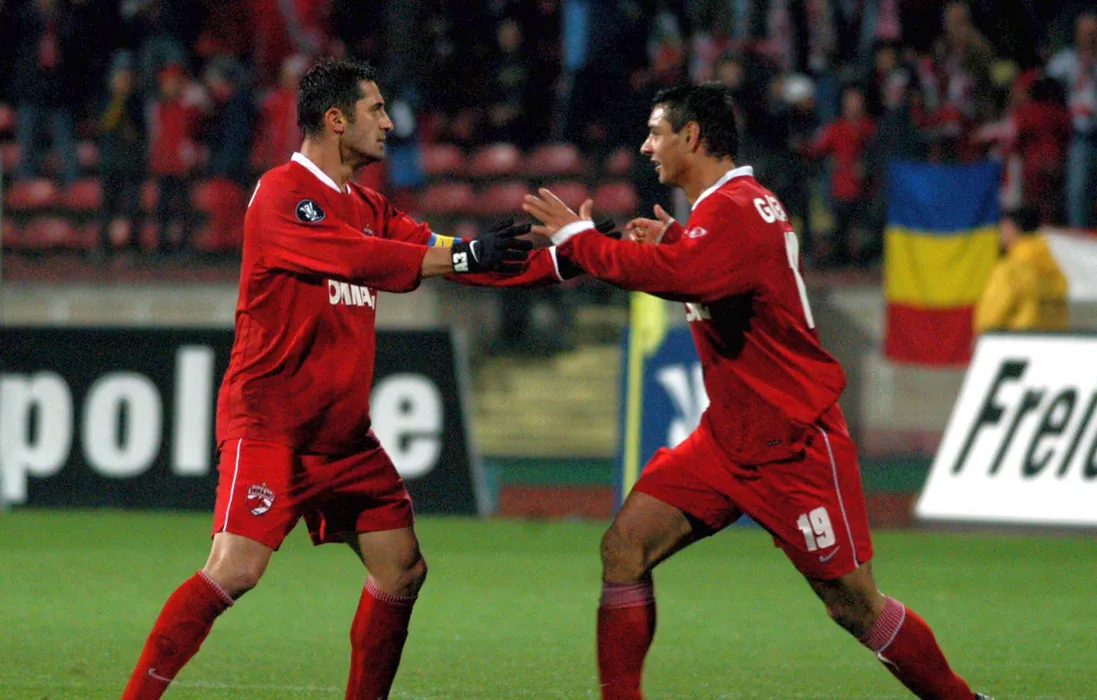 Claudiu Niculescu si Ionel Ganea se bucura dupa primul gol dinamovist.