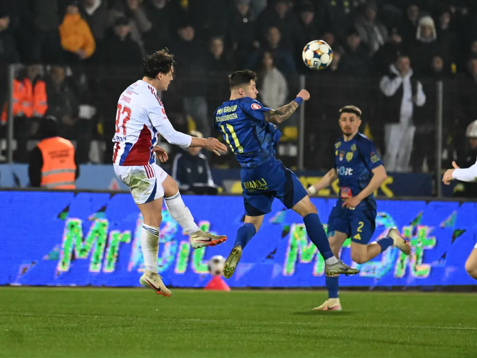 Holz Conrado Buchanelli si Andrei Fernando Dragu in meciul dintre Unirea Slobozia si Otelul Galati, contand pentru Play out-ul Superligii Superbet, desfasurat pe Stadionul 1 Mai din Slobozia, luni 23 martie 2026. © FOTO:Razvan Pasarica/SPORT PICTURES