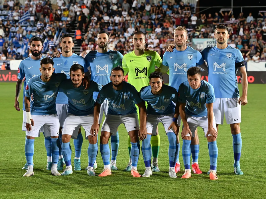 Fotbalistii voluntareni la o fotografie de grup realizata inaintea meciului de fotbal dintre FC Voluntari si Rapid Bucuresti, din cadrul Superligii Superbet, desfasurat pe Stadionul Anghel Iordanescu din Voluntari, luni 7 august 2023. © FOTO:Razvan Pasarica/SPORT PICTURES