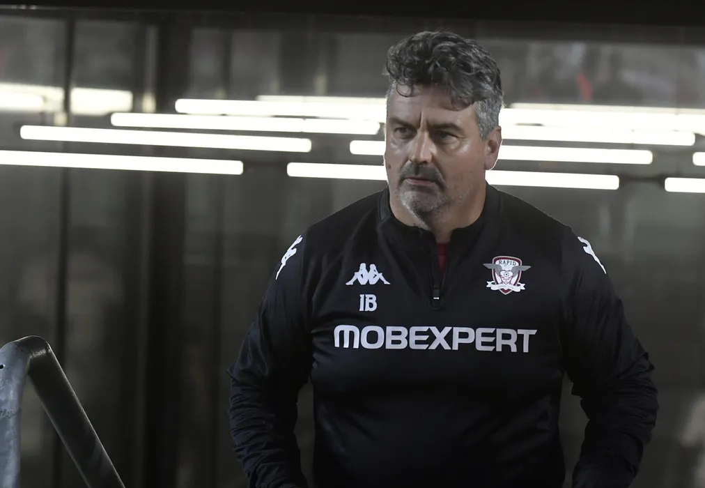 Antrenorul Iain Richard Brunskill în meciul de fotbal dintre FC Rapid 1923 București și Sepsi OSK Sfântu Gheorghe, contând pentru Superliga Superbet, desfășurat pe Stadionul Superbet Arena - Giulești din București, luni 5 august 2024. © FOTO: Simion MECHNO/SPORT PICTURES