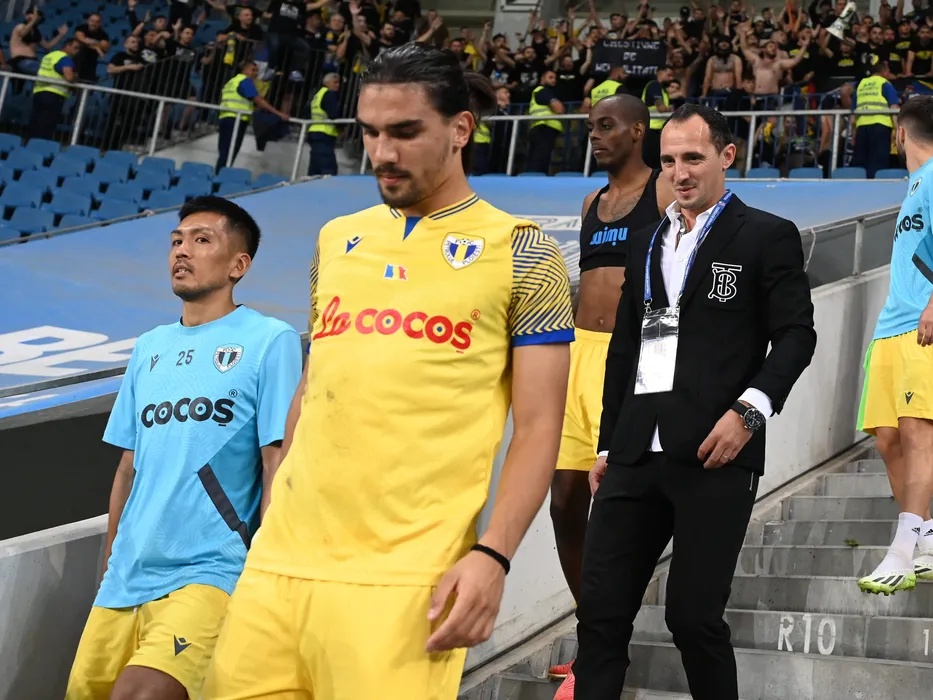 Seto Takayuki,Marian Fernando Huja si Claudiu Tudor se bucura dupa meciul de fotbal dintre Universitatea Craiova si Petrolul Ploiesti, contand pentru Superliga Superbet, desfasurat pe Stadionul Ion Oblemenco din Craiova, duminica 22 octombrie 2023. © FOTO:Razvan Pasarica/SPORT PICTURES