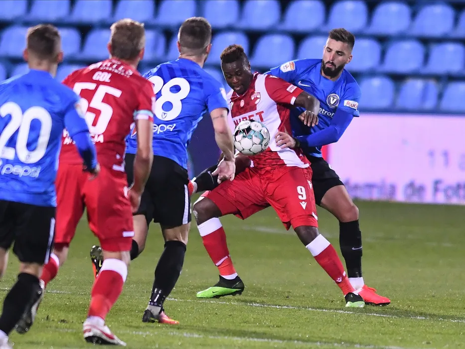 Magaye Gueye si Alin Dobrosavlevici in meciul de fotbal dintre FC Viitorul Constanta si Dinamo Bucuresti, contand pentru Liga 1 Casa Pariurilor, desfasurat fara spectatori pe Stadionul Central al Academiei Gheorghe Hagi din Ovidiu, duminica 8 noiembrie 2020. © FOTO:Razvan Pasarica/SPORT PICTURES