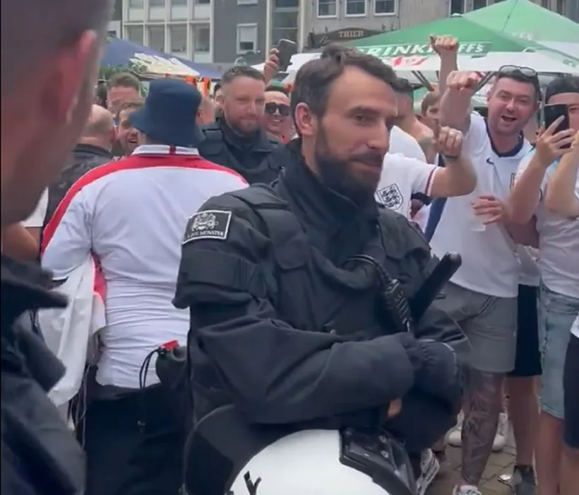 Clona lui Gareth Southgate lucrează pentru poliția germană! Cum au reacționat fanii naționalei Angliei când l-au văzut pe stradă, la meciul de la EURO cu Olanda