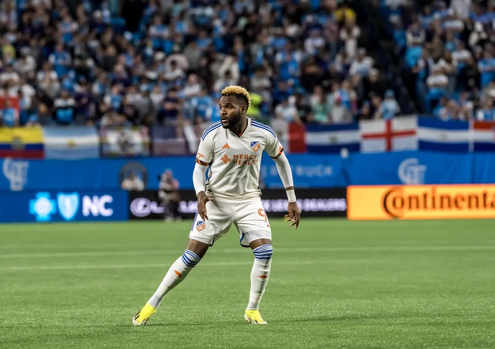 March 30, 2024, Charlotte, Nc, USA: FC Cincinnati Attacker AARON BOUPENDZA runs down the field during the Charlotte FC Vs FC Cincinnati match at Bank of America Stadium in Charlotte, NC. The match ends in a 1-1 tie in regulation.,Image: 861413967, License: Rights-managed, Restrictions: , Model Release: no