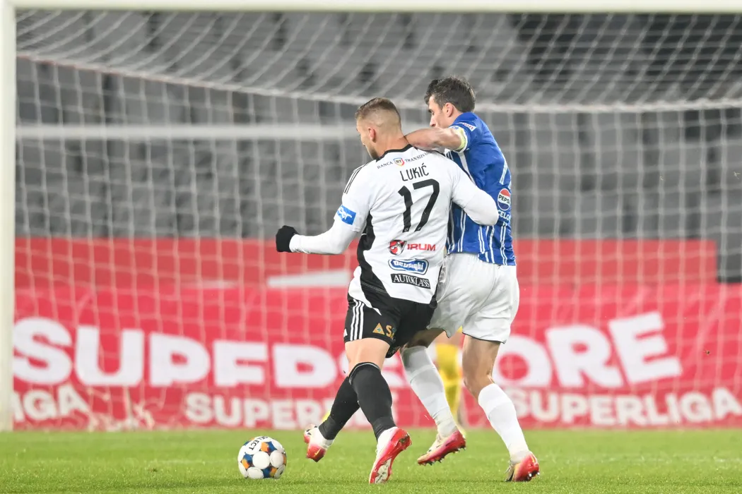 Ionut Justinian Larie si Jovo Lukic in meciul de fotbal dintre FC Universitatea Cluj si Farul Constanta, contand pentru Superliga Superbet, desfasurat pe Cluj Arena din Cluj-Napoca, duminica 21 decembrie 2025. © FOTO:Flaviu Buboi/SPORT PICTURES