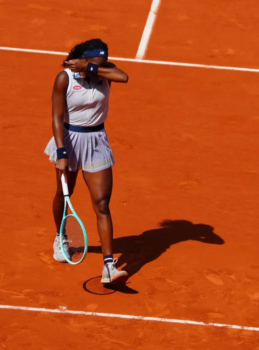 Coco Gauff disputes a call from the umpire Aurelie Tourte and appears to be in tears shortly after