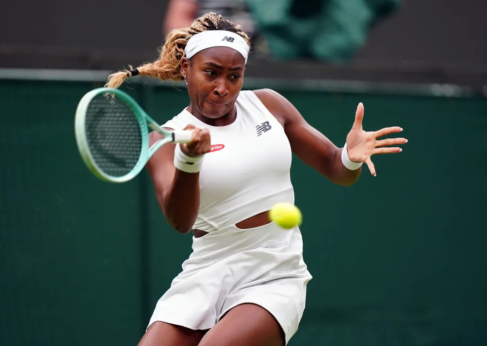03 July 2024, United Kingdom, London: American tennis player Coco Gauff in action against Romania's Anca Todoni during thier women's singles second round of the 2024 Wimbledon Championships at the All England Lawn Tennis and Croquet Club. Photo: Zac Goodwin/PA Wire/dpa