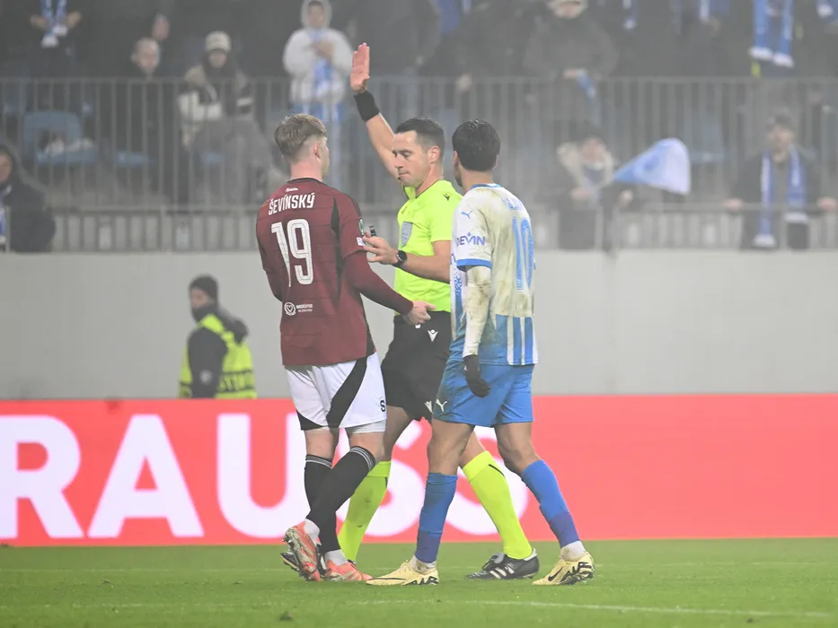 Arbitrul central Jasper Vergoote alaturi de Adam Ševínský si Stefan Baiaram in meciul dintre Universitatea Craiova si Sparta Praga, contand pentru UEFA Conference League, desfasurat pe Stadionul Ion Oblemenco din Craiova, joi 11 decembrie 2025. © FOTO:Razvan Pasarica/SPORT PICTURES