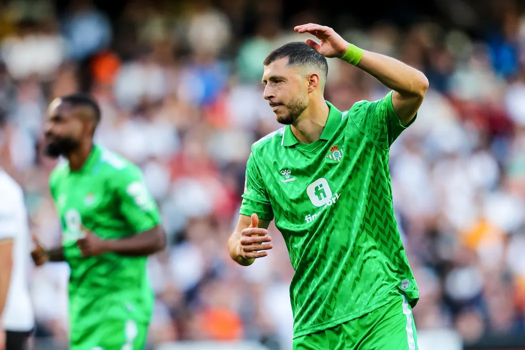 Guido Rodriguez of Betis gestures during the Spanish league, La Liga EA Sports, football match played between Valencia CF and Real Betis Balompie at Mestalla stadium on April 20, 2024, in Valencia, Spain.