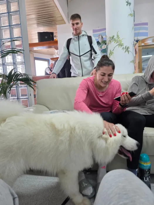 Companie inedită în cantonamentul din Italia pentru canotori! Câinele Hugo a devenit mascota Team Romania