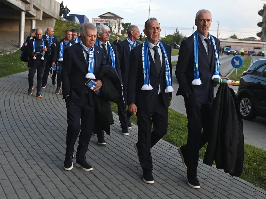 Legendele Craiovei Maxima Nicolae tilihoi, Gabriel Boldici si Silviu Lung ajung la arena inaintea meciului de fotbal dintre Universitatea Craiova si FCSB, contand pentru Play-off-ul Superligii Superbet, desfasurat pe Stadionul Ion Oblemenco din Craiova, duminica 30 aprilie 2023. © FOTO:Razvan Pasarica/SPORT PICTURES