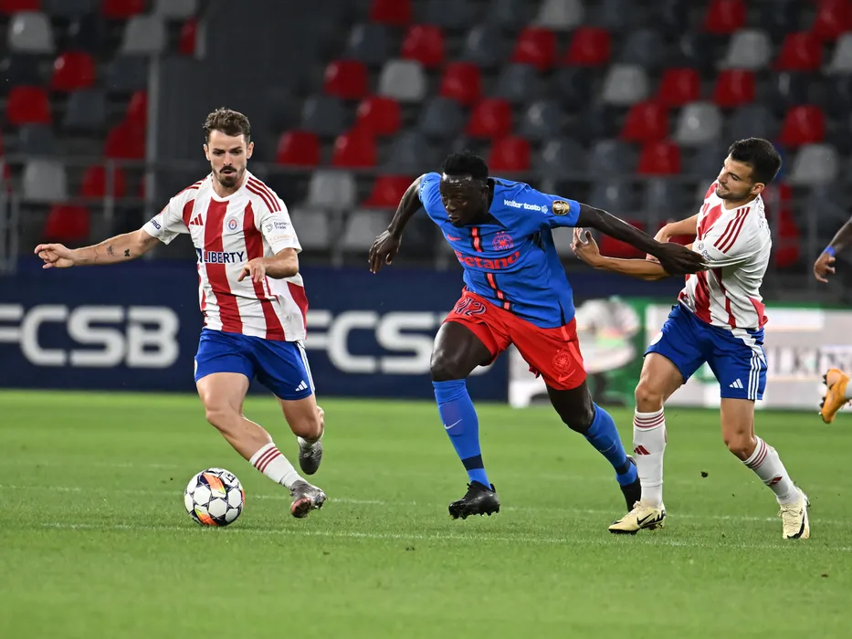 Joao Pedro Santos Lameira, Baba Alhassan si Frederic Ferreira Maciel in meciul dintre FCSB si Otelul Galati, contand pentru Superliga Superbet, desfasurat pe Stadionul Steaua-Ghencea din Bucuresti, vineri 26 iulie 2024. © FOTO:Razvan Pasarica/SPORT PICTURES