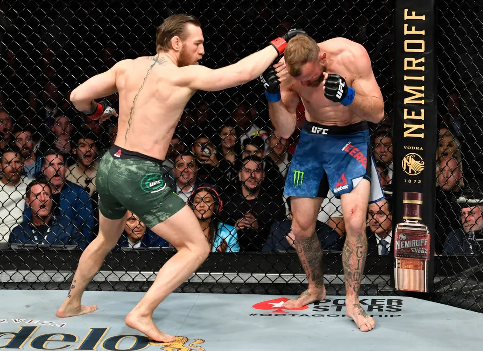 LAS VEGAS, NEVADA - JANUARY 18: (L-R) Conor McGregor of Ireland punches Donald Cerrone in their welterweight fight during the UFC 246 event at T-Mobile Arena on January 18, 2020 in Las Vegas, Nevada. (Photo by Jeff Bottari/Zuffa LLC)