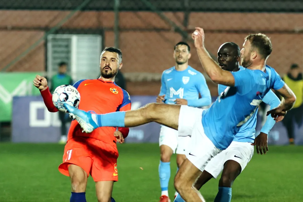 Adam Nemec (D), de la FC Voluntari, lupta pentru balon cu Constantin Budescu (S), de la FCSB, in meciul de fotbal din etapa a XV-a a Ligii 1, disputat pe stadionul Anghel Iordanescu din Voluntari, sambata, 7 noiembrie 2021. GEORGE FILIP / MEDIAFAX FOTO