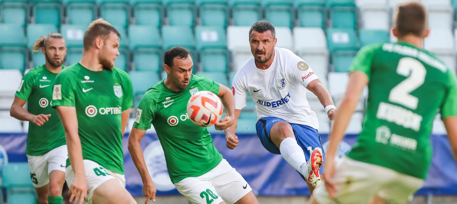 Sergei Zenjov si Constantin Valentin Budescu in meciul de fotbal dintre Flora Tallinn si Farul Constanta, contand pentru UEFA Europa Conference League, desfasurat pe Stadionul Lilleküla din Tallinn, miercuri 16 august 2023. © FOTO:Antonio Vasile/SPORT PICTURES