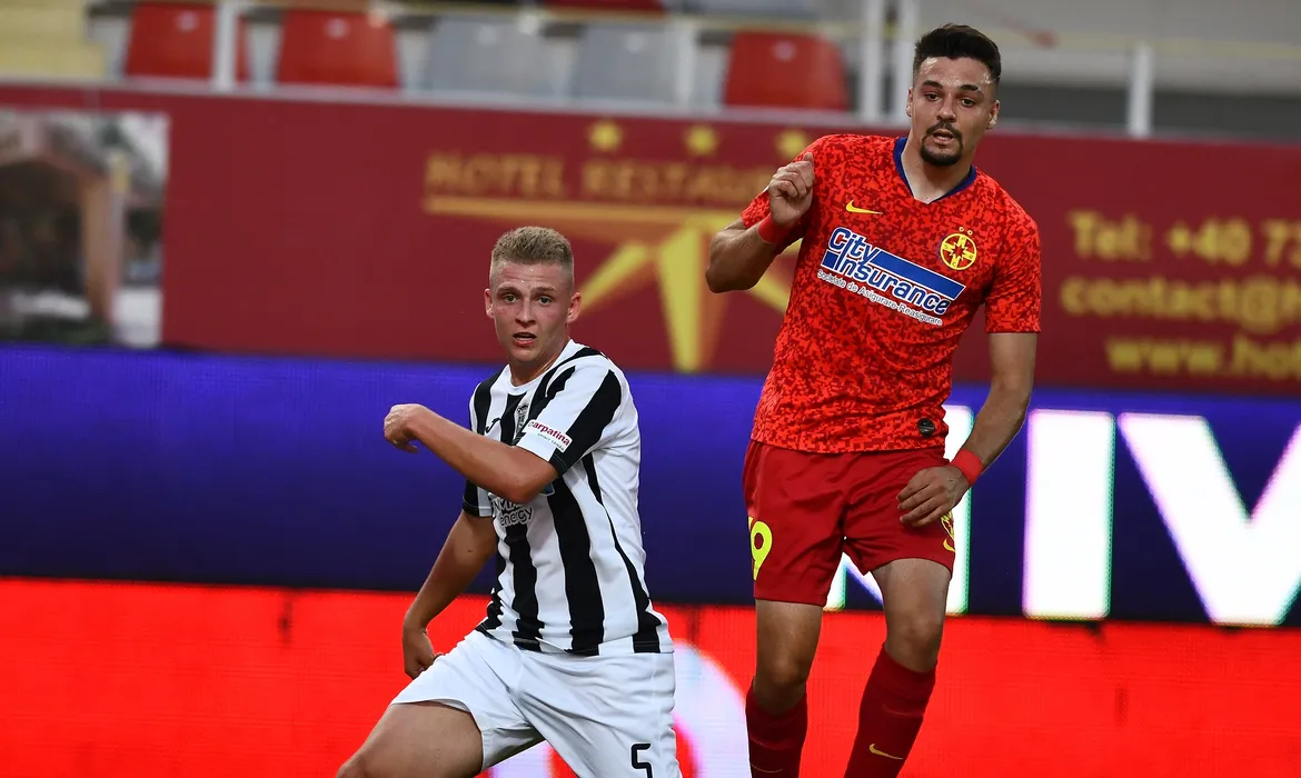 Constantin Dima si Adrian Petre in meciul de fotbal dintre Astra Giurgiu si FCSB, contand pentru play-off-ul Ligii 1 Casa Pariurilor, disputat fara spectatori pe Stadionul Marin Anastasovici din Giurgiu, luni 29 iunie 2020. © FOTO:Razvan Pasarica/SPORT PICTURES