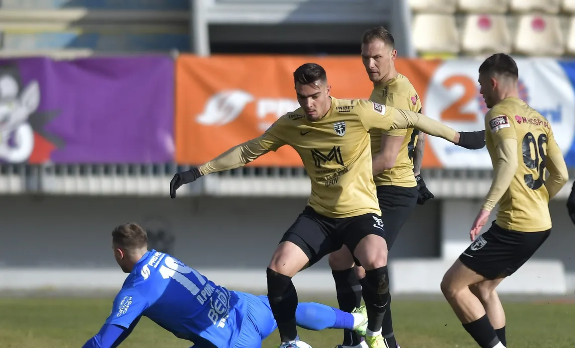 Lukas Droppa, Iliuta Daniel Popa si Denis Ciobotariu in meciul de fotbal dintre Chindia Targoviste si FC Voluntari, contand pentru Liga 1 Casa Pariurilor, desfasurat pe Stadionul Ilie Oana din Ploiesti, sambata 22 ianuarie 2022. © FOTO:Razvan Pasarica/SPORT PICTURES