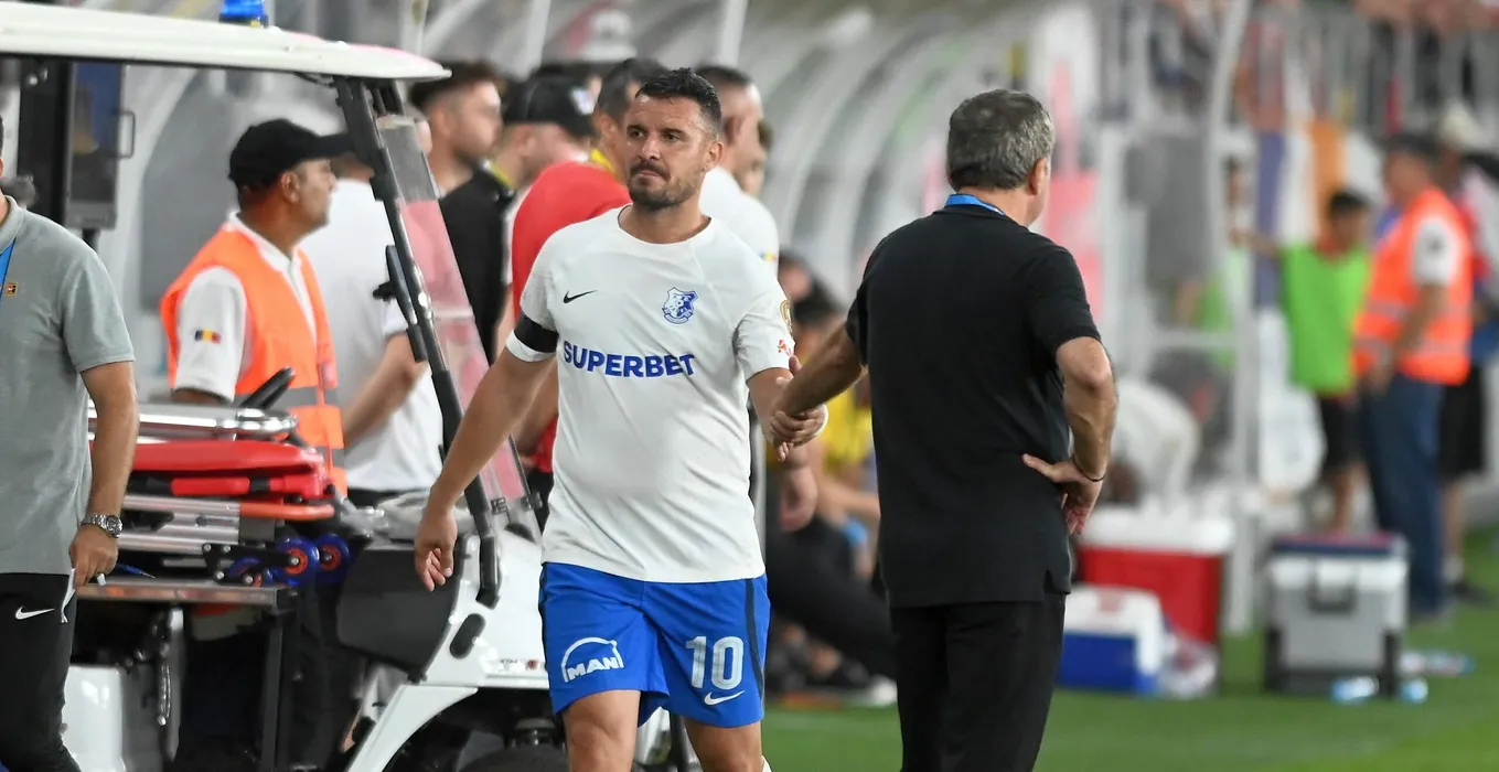 Constantin Valentin Budescu este salutat de Gheorghe Hagi la iesirea din teren din meciul de fotbal dintre Dinamo Bucuresti si Farul Constanta, din cadrul Superligii Superbet, desfasurat pe Stadionul National Arcul de Triumf din Bucuresti, vineri 22 septembrie 2023. © FOTO:Razvan Pasarica/SPORT PICTURES