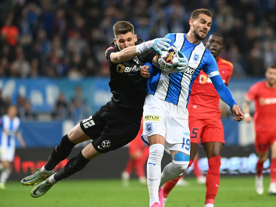 Stefan Tarnovanu si Elvir Koljic in meciul de fotbal dintre Universitatea Craiova si FCSB, contand pentru Play-off-ul Superligii Superbet, desfasurat pe Stadionul Ion Oblemenco din Craiova, duminica 30 aprilie 2023. © FOTO:Razvan Pasarica/SPORT PICTURES