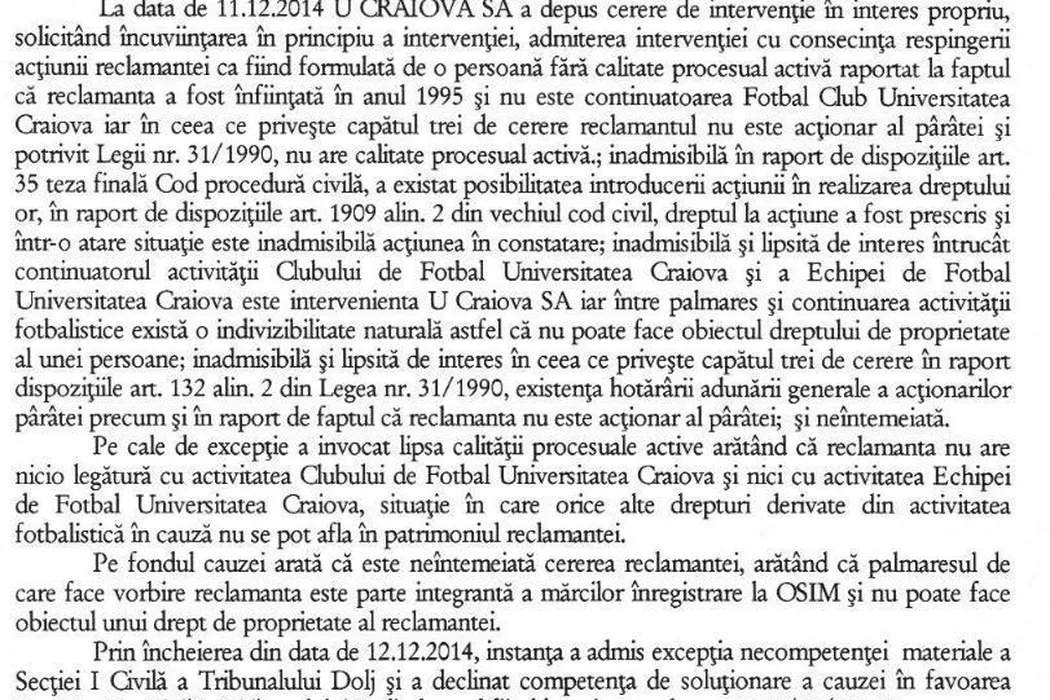 Continuă războiul dintre Mititelu și CS U Craiova. Cum a motivat Tribunalul Dolj decizia în problema palmaresului