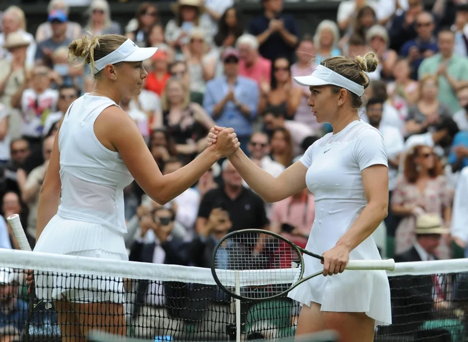 Tennis Championships - Week One - Day Ten - All England Lawn Tennis Club, Wimbledon - Wednesday 6th July 2022 Womens Singles. Simona Halep ROU v Amanda Anisimova USA Simona Halep with Amanda Anisimova at the net after the match,Image: 705499262, License: Rights-managed, Restrictions: PUBLICATIONxNOTxINxUK, Credit images as "Profimedia/ IMAGO", Model Release: no