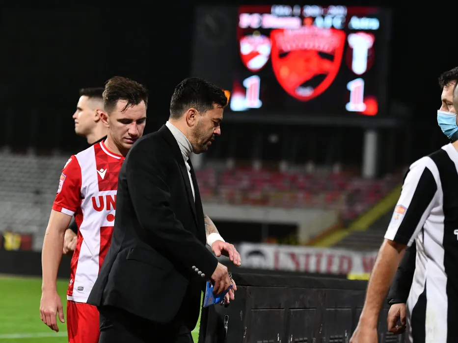Deian Cristian Sorescu si Cosmin Contra alaturi de tabela de marcaj dupa meciul de fotbal dintre Dinamo Bucuresti si Astra Giurgiu, contand pentru Liga 1 Casa Pariurilor, desfasurat fara spectatori pe stadionul Dinamo din Bucuresti, sambata 14 noiembrie 2020. © FOTO:Razvan Pasarica/SPORT PICTURES