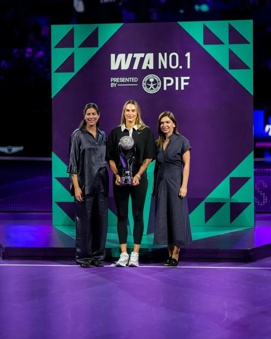 Controverse la Turneul Campioanelor după ce arabii au pus-o pe Simona Halep să-i înmâneze Arynei Sabalenka trofeul pentru locul 1 WTA: „De ce tocmai ea?”. FOTO