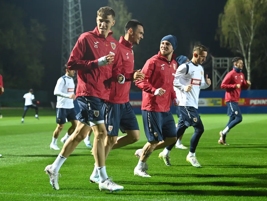 Fotbalistii romani Octavian Popescu, Adrian Sut, Deian Sorescu si Marius Stefanescu la antrenamentul oficial de dinaintea meciului impotriva Belarus, din cadrul preliminariilor Campionatului European 2024, desfasurat la Centrul National de Fotbal de la Mogosoaia, luni 27 martie 2023. © FOTO:Razvan Pasarica/SPORT PICTURES