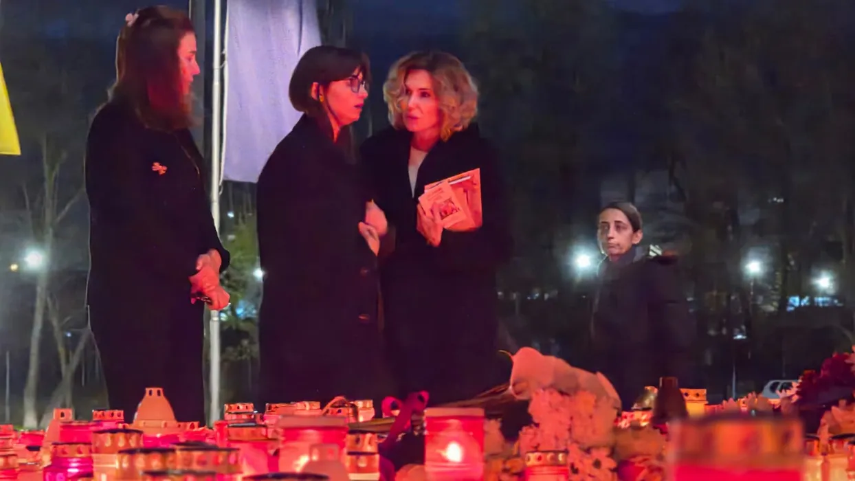 Imagini copleşitoare. Rând pe rând, Neli, Matei, Marilu şi Ana-Maria din familia Lucescu au trecut să vadă altarul de candele aprinse în memoria lui Mircea Lucescu