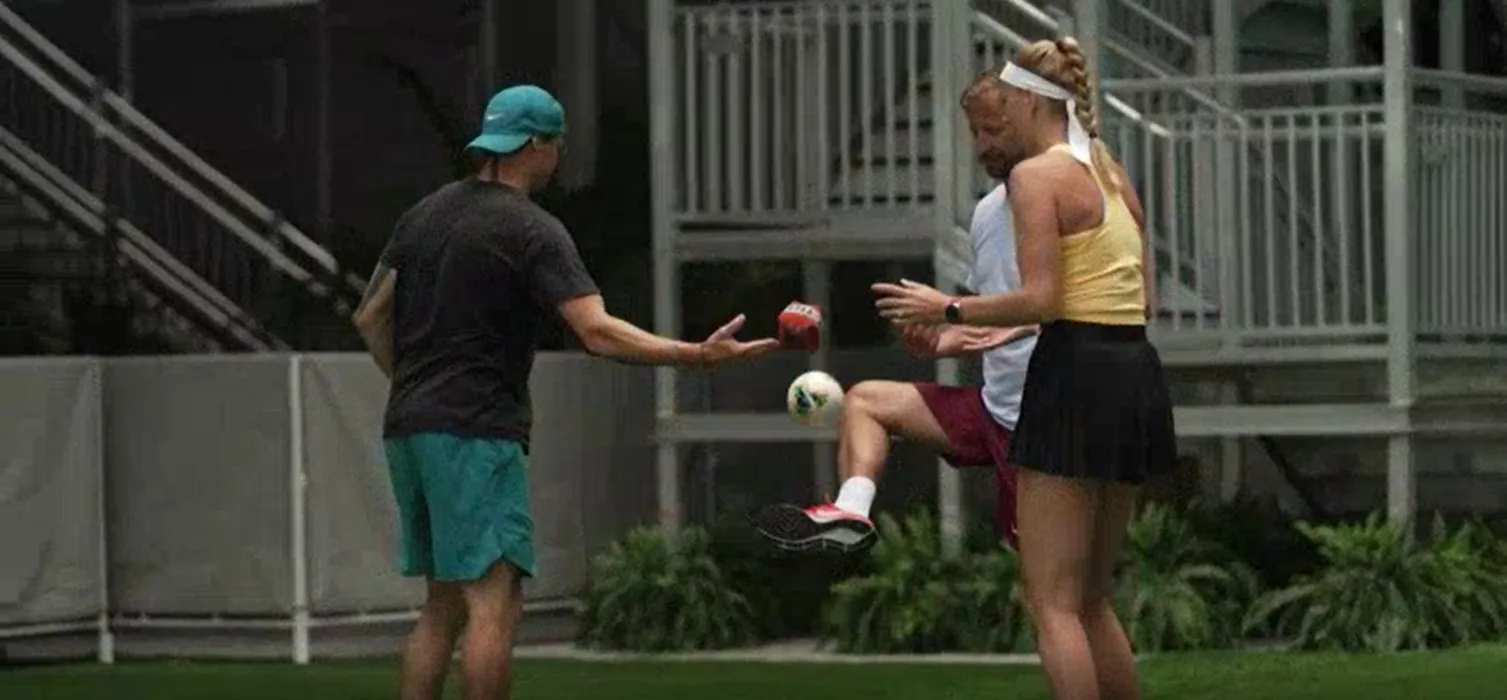 CORESPONDENȚĂ DE LA MIAMI OPEN | Imagini uimitoare cu ce îi place Petrei Kvtiova să joace cu soțul ei înaintea unui meci și cum a patentat Sorana Cîrstea „fothandbalul”! VIDEO