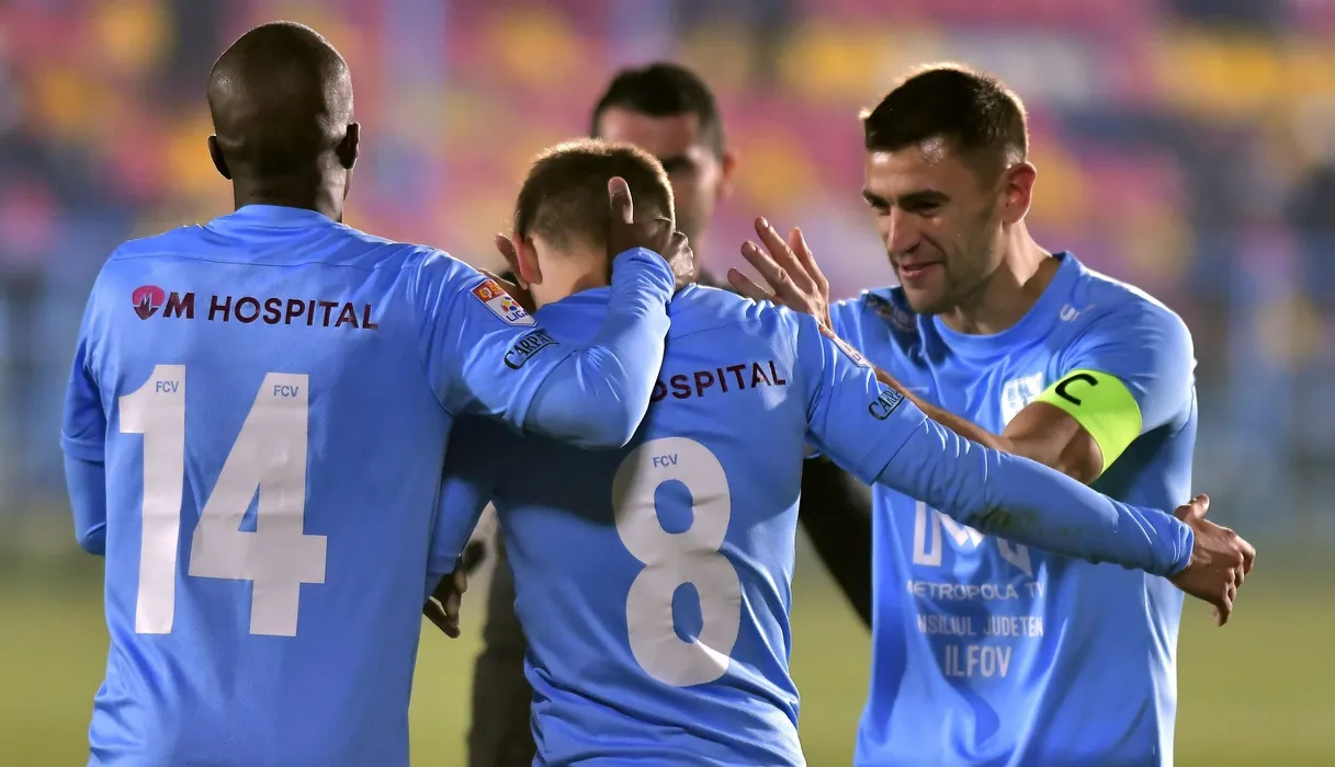 Bucurie a fotbalistilor voluntareni Marcelo Andre Da Veiga Lopes si Igor Armas dupa un gol marcat de catre Ion Gheorghe in meciul de fotbal dintre FC Voluntari si Dinamo Bucuresti, contand pentru Liga 1 Casa Pariurilor, desfasurat pe Stadionul Anghel Iordanescu din Voluntari, luni 22 noiembrie 2021. © FOTO:Razvan Pasarica/SPORT PICTURES