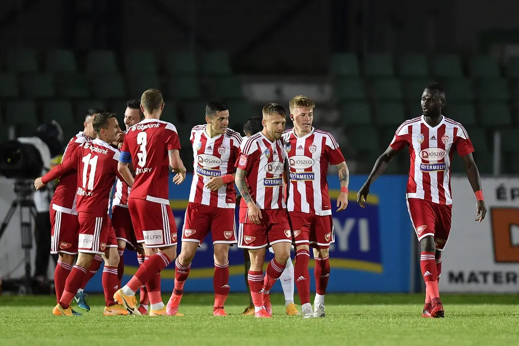 Jucatorii formatiei Sepsi OSK reactioneaza dupa ce au inscris al doilea gol in timpul meciului de fotbal contra echipei FCSB din etapa 8 a play-off-ului Ligii 1, disputat pe stadionul Municipal din Sfantu Gheorghe, duminica, 16 mai 2021. ALEX NICODIM / MEDIAFAX FOTO
