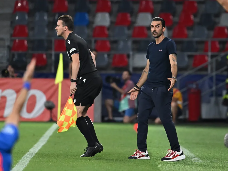 Arbitrul asistent Theodoros Georgiou alături de Elias Charalambous in meciul dintre FCSB si Maccabi Tel Aviv FC, contand pentru Preliminariile Ligii Campionilor, desfasurat pe Stadionul Steaua-Ghencea din Bucuresti, marti 23 iulie 2024. © FOTO:Razvan Pasarica/SPORT PICTURES
