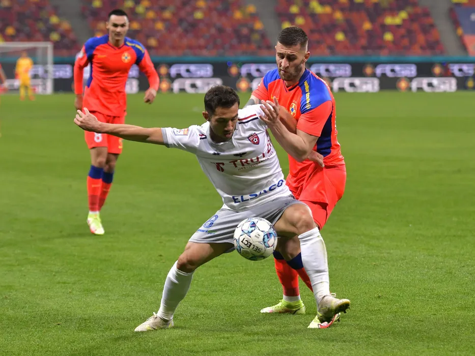 Realdo Fili si Ovidiu Marian Popescu in meciul de fotbal dintre FCSB si FC Botosani, contand pentru Liga 1 Casa Pariurilor, desfasurat pe Arena Nationala din Bucuresti, duminica 21 noiembrie 2021. © FOTO:Razvan Pasarica/SPORT PICTURES