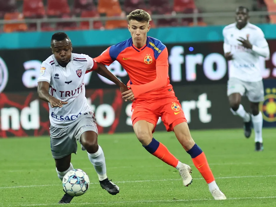 Hervin Ongenda si Octavian George Popescu in meciul de fotbal dintre FCSB si FC Botosani, contand pentru Liga 1 Casa Pariurilor, desfasurat pe Arena Nationala din Bucuresti, duminica 21 noiembrie 2021. © FOTO:Gheorghe Fluster/SPORT PICTURES
