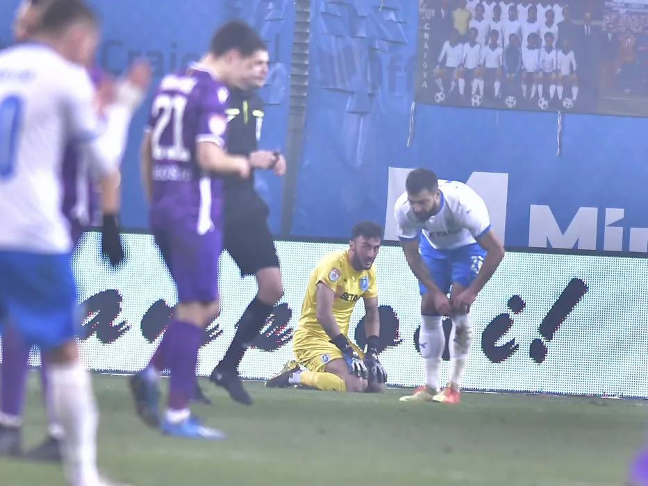 Mirko Pigliacelli si Marius Marcel Constantin in meciul de fotbal dintre Universitatea Craiova si FC Arges, contand pentru Liga 1 Casa Pariurilor, desfasurat fara spectatori pe Stadionul Ion Oblemenco din Craiova, vineri 29 ianuarie 2021. © FOTO:Razvan Pasarica/SPORT PICTURES
