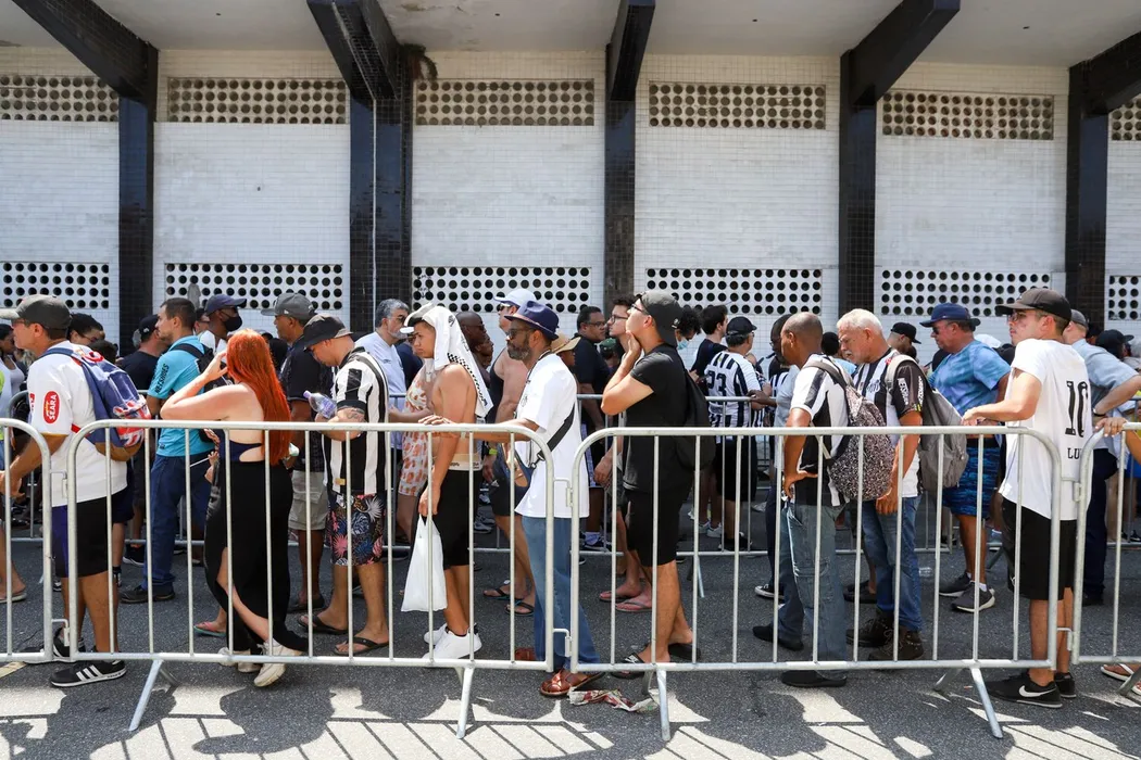 SANTOS, BRAZIL - JANUARY 02: People queue to attend the funeral ceremony of Brazilian football legend Pele at Vila Belmiro Stadium in Santos, Brazil on January 02, 2023. Fernanda Luz / Anadolu Agency,Image: 747400580, License: Rights-managed, Restrictions: , Model Release: no