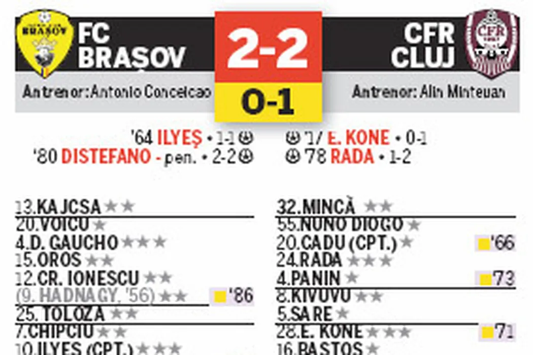 Coșmar cu fluier!** FC Brașov – CFR Cluj 2-2
