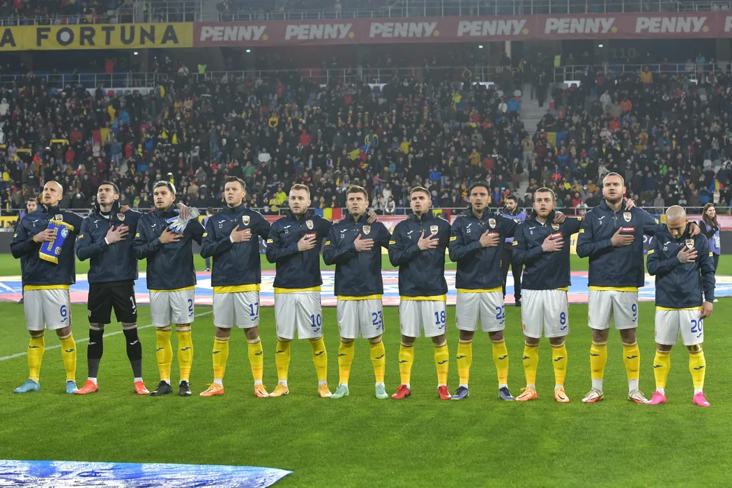 Fotbalistii romani la startul meciului amical de fotbal dintre Romania si Grecia, desfasurat pe Stadionul Steaua din Bucuresti, vineri 25 martie 2022. © FOTO:Razvan Pasarica/SPORT PICTURES