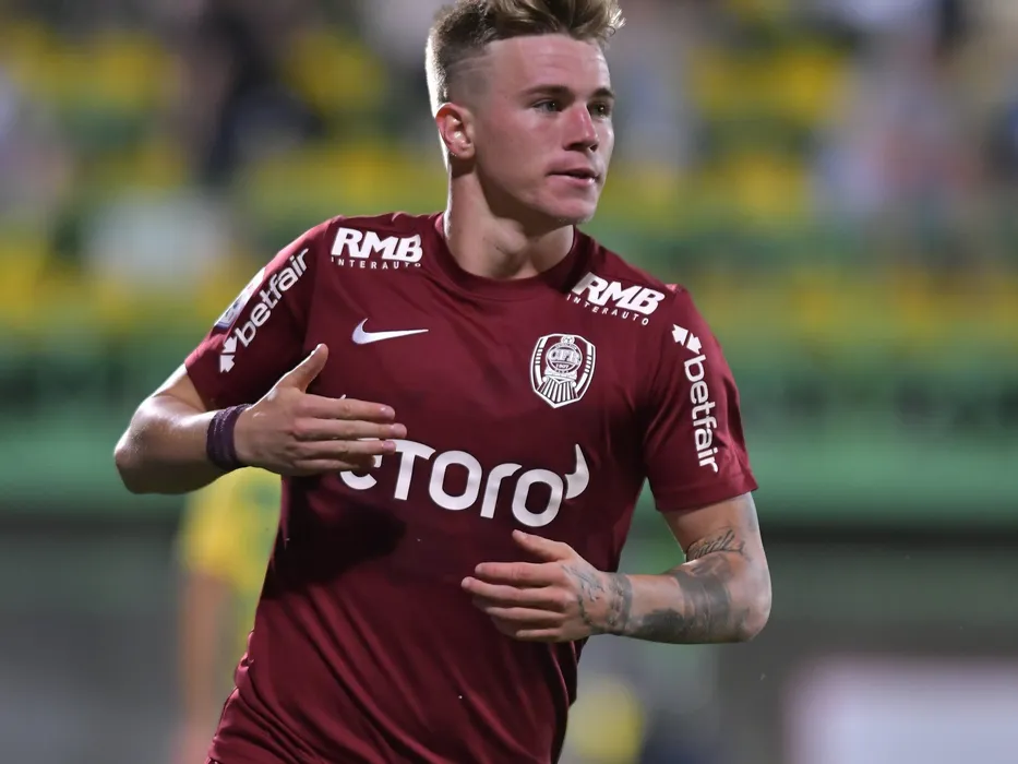 Claudiu Adrian Mihai Petrila se bucura dupa un gol marcat in meciul de fotbal dintre CS Mioveni si CFR Cluj, contand pentru Liga 1 Casa Pariurilor, desfasurat pe Stadionul Orasenesc din Mioveni, sambata 6 august 2021. © FOTO:Razvan Pasarica/SPORT PICTURES