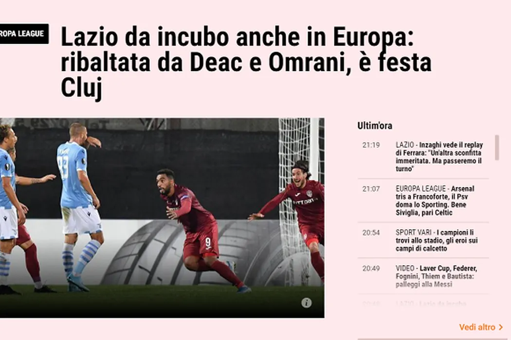 „Coșmar!”, „Zdrobiți de români! Clujul petrece” și „Lazio nu și-a arătat caninii în țara lui Dracula” FOTO | Reacțiile presei din Italia după CFR – Lazio 2-1