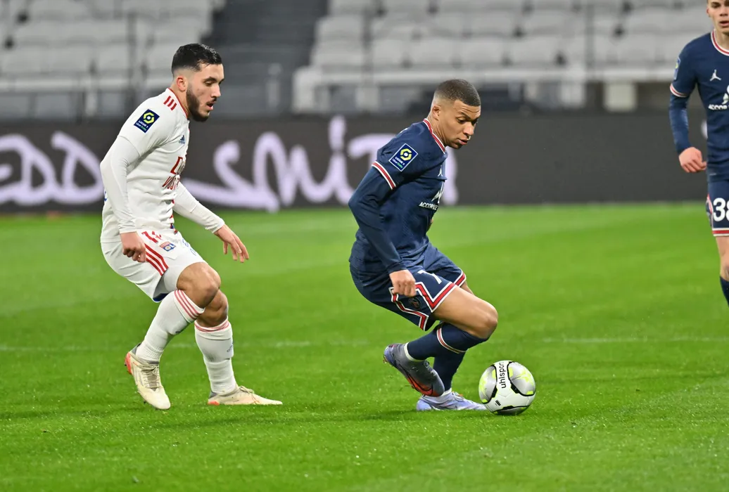 Rayan Cherki lyon vs Kylian Mbappe psg FOOTBALL: Olympique Lyonnais vs Paris Saint-Germain - Ligue 1 - 09/01/2022 FredericChambert/Panoramic PUBLICATIONxNOTxINxFRAxITAxBEL