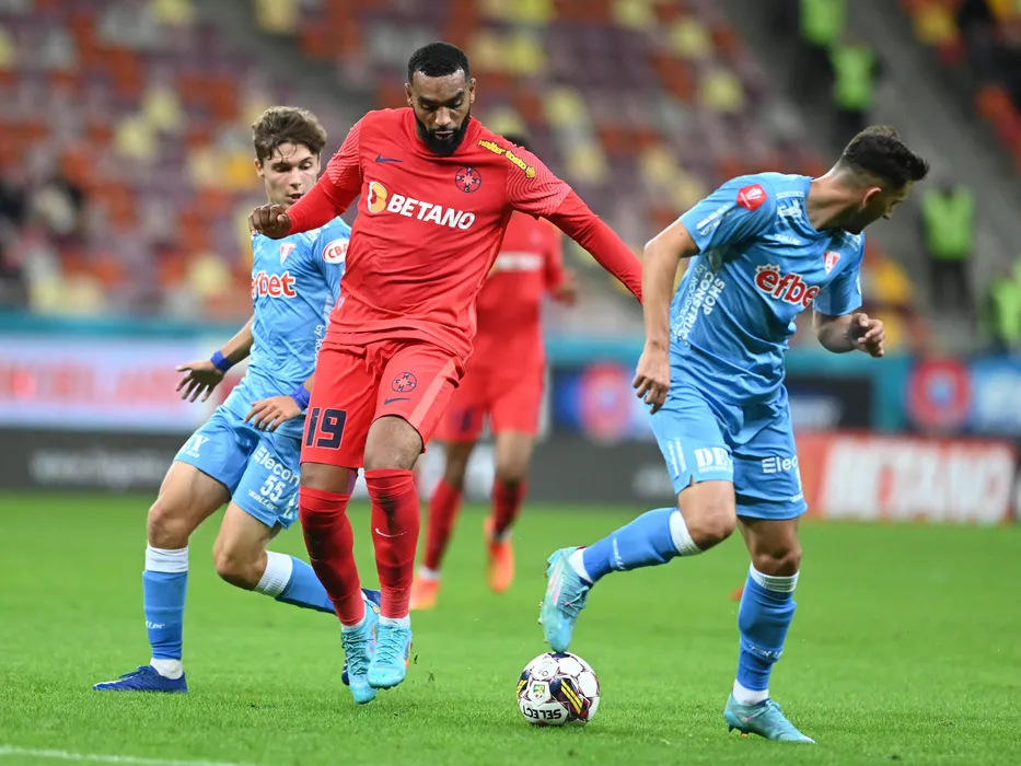 Rares Mihai Pop si Abdel Slem Billel Omrani in meciul de fotbal dintre FCSB si UTA Arad, contand pentru Superliga Superbet, desfasurat pe Arena Nationala din Bucuresti, duminica 16 octombrie 2022. © FOTO:Razvan Pasarica/SPORT PICTURES