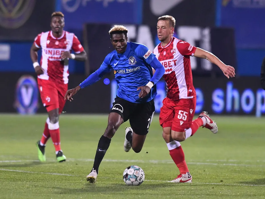Ely Ernesto Lopes Fernandes si Janusz Krzysztof Gol in meciul de fotbal dintre FC Viitorul Constanta si Dinamo Bucuresti, contand pentru Liga 1 Casa Pariurilor, desfasurat fara spectatori pe Stadionul Central al Academiei Gheorghe Hagi din Ovidiu, duminica 8 noiembrie 2020. © FOTO:Razvan Pasarica/SPORT PICTURES
