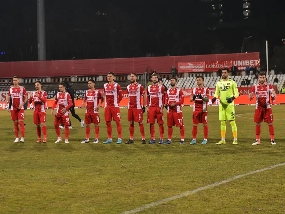Fotbalistii dinamovisti la startul meciului de fotbal dintre Dinamo Bucuresti si Universitatea Craiova, contand pentru Liga 1 Casa Pariurilor, desfasurat pe Stadionul Dinamo din Bucuresti, joi 10 februarie 2022. © FOTO:Razvan Pasarica/SPORT PICTURES