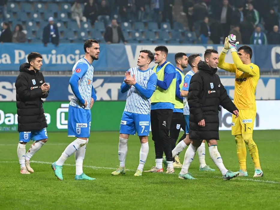 Fotbali�tii craioveni �tefan Marinel Vladoiu, Elvir Koljic, Zvonimir Kozulj, Juraj Badelj, Alexandru Mateiu si David Beniamin Lazar salută galeria după meciul de fotbal dintre Universitatea Craiova si Universitatea Cluj, cont�nd pentru Superliga Superbet, desfă�urat pe Stadionul Ion Oblemenco din Craiova, vineri 9 februarie 2024. Craiova *** Craiovian footballers Stefan Marinel Vladoiu, Elvir Koljic, Zvonimir Kozulj, Juraj Badelj, Alexandru Mateiu and David Beniamin Lazar greet the gallery after the football match between Universitatea Craiova and Universitatea Cluj, counting for the Superbet Super League, held at the Ion Oblemenco Stadium in Craiova, on Friday 9 February 2024 Craiova Copyright: xRăzvanxPÄSÄRICÄ/SPORTxPICTURESx,Image: 848309386, License: Rights-managed, Restrictions: Credit images as "Profimedia/ IMAGO", Model Release: no